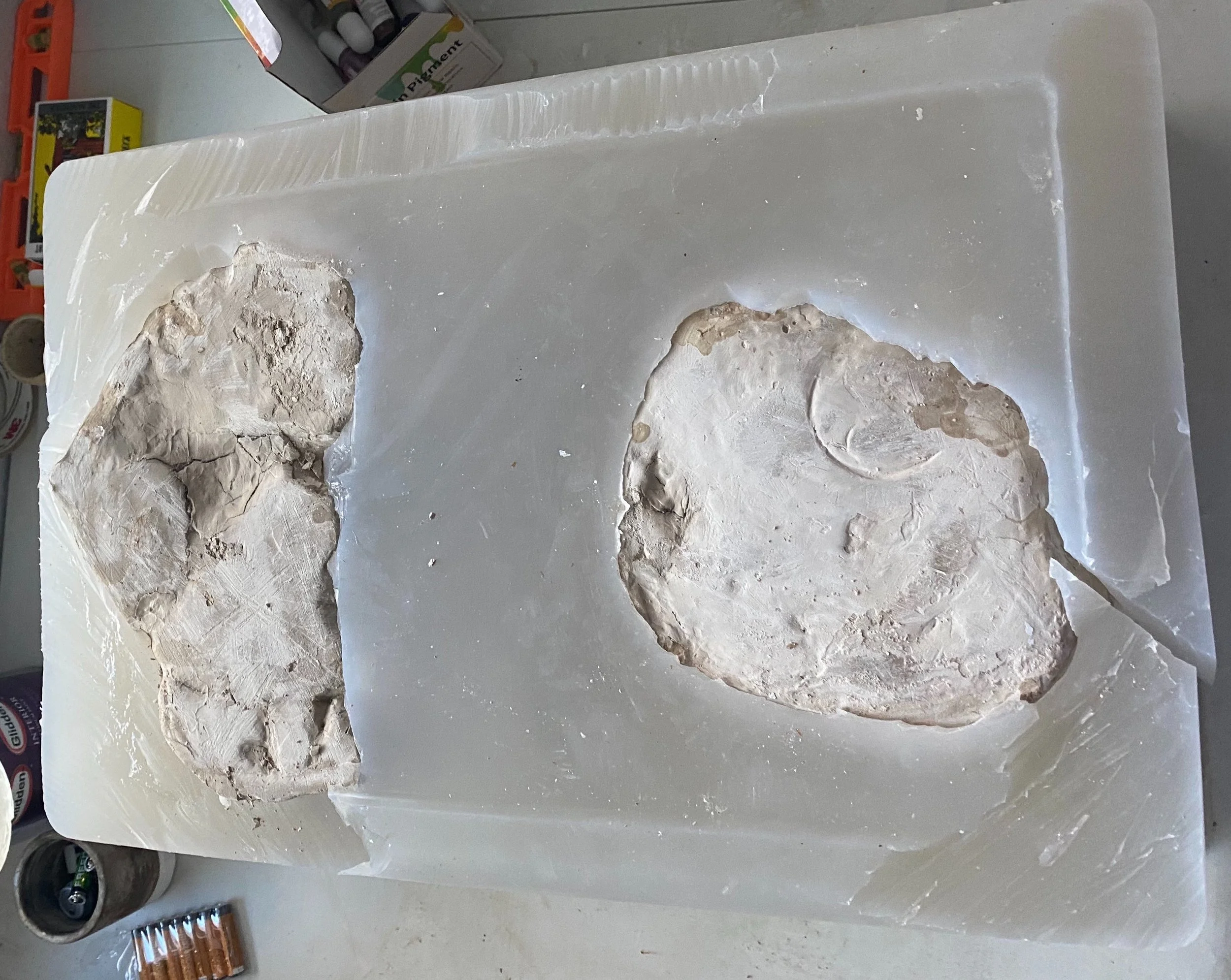 Clay was used to form the molds. It was important for me to use my hands to form the molds in order to ensure my imprintment into the sculptures. To have the ability to create the creases and folds symbolize that our memories are built from our experiences and molded by our emotions.